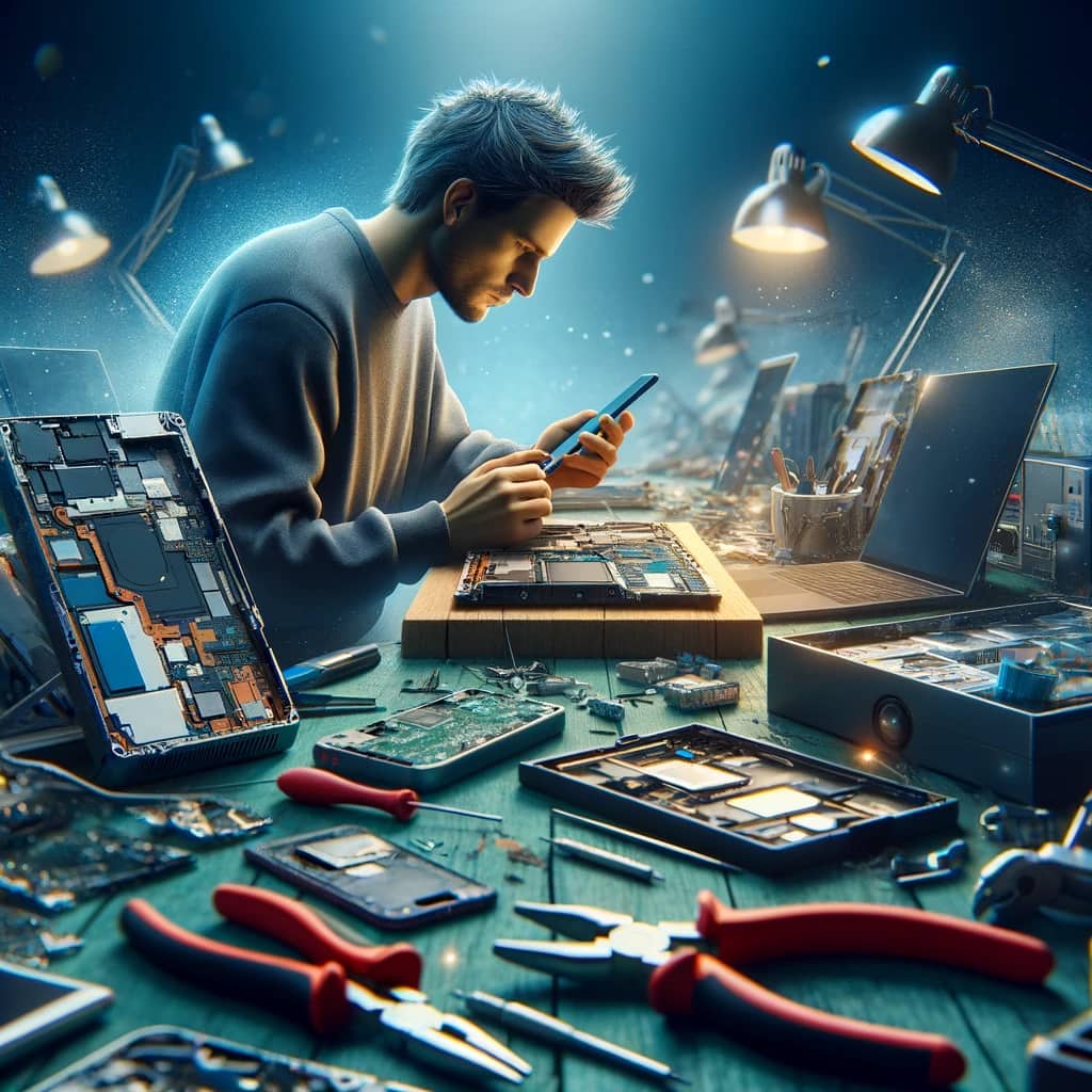 Ofte, i stedet for å kaste skadde gjenstander, kan vi prøve å reparere dem. Reparasjon kan gi gjenstander et nytt liv og redusere behovet for å kjøpe nye ting. Dette kan være spesielt relevant for elektronikk som mobiltelefoner eller datamaskiner. Vi kan redusere forbruket vårt ved å unngå å kjøpe ny elektronikk med mindre den gamle ikke fungerer lenger.