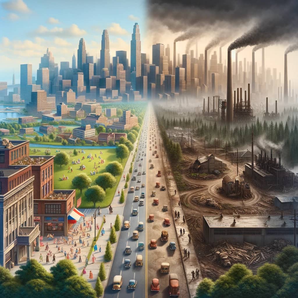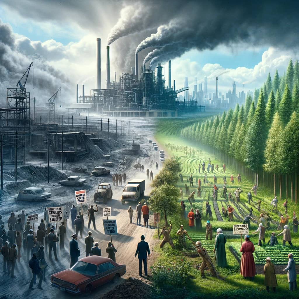 For å forstå dette bedre, la oss ta en titt på historien. Perioden mellom første og andre verdenskrig var preget av økonomisk krise og sosial uro. Etter 1945 prøvde mange å skape et samfunn med mindre uro, større stabilitet og høyere velstand. Dette var et forsøk på å styrke den sosiale og økonomiske bærekraften. Likevel ble det i denne prosessen ofte oversett at naturen og miljøet kunne ta skade.