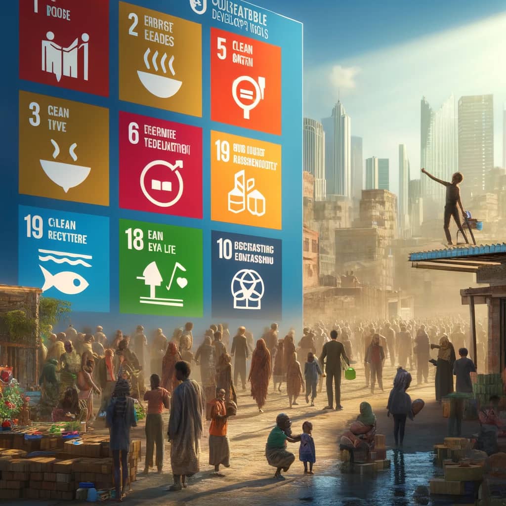 Et av hovedmålene er å avskaffe ekstrem fattigdom over hele verden. Dette innebærer å sikre at alle mennesker har tilgang til grunnleggende behov som mat, rent vann, helsehjelp og utdanning. I tillegg er det et mål å redusere forskjellene både internt i land og mellom land. Dette innebærer å skape rettferdige samfunn der alle har like muligheter til å lykkes og få tilgang til ressurser.