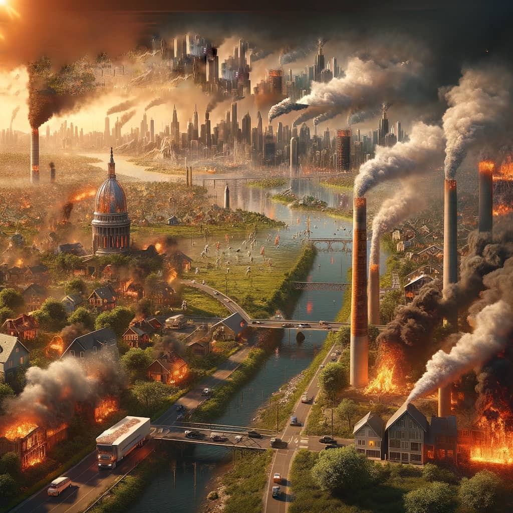 Klimaforandringene er en annen stor utfordring vi står overfor. Økt bruk av kull, olje og gass har ført til store CO2-utslipp, noe som har påvirket klimaet vårt. Disse endringene har ført til temperaturstigning og ekstreme værforhold, inkludert tørke, skogbranner, ekstremregn og flom. Det er bred vitenskapelig enighet om at klimaforandringene er menneskeskapte, selv om det er uenighet om hvordan vi skal håndtere dem. Forskere kan ikke gi alle svarene, da dette også handler om våre verdier og hva slags samfunn vi ønsker. Det har lenge vært en vilje til å gjøre noe med klimaforandringene, men mange mener at det er for lite handling.